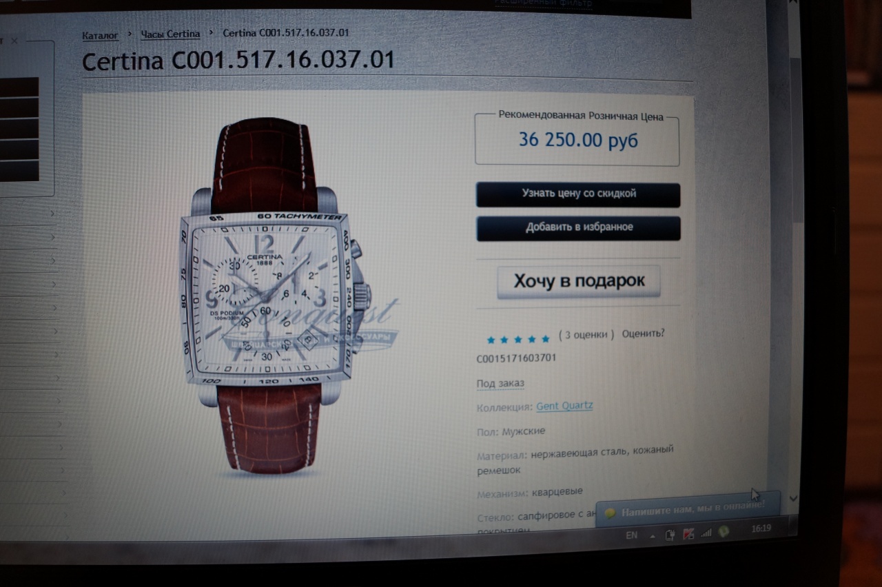 Продам оригинальные Швейцарские часы Certina DS Podium Square C001.517.16.037.01. Часы в отличном состоянии на природу не носились в море не плавали, по корпусу и стеклу, без царапин. Ремень на четверку. Документы и коробка утеряны. На данный момент такие часы стоят около 40.000т.р., но с белым циферблатом найти трудно!!! Продам за 17.000т.р.. По просьбе вышлю дополнительные фото на электронку, Вибер, Ват сап. Могу отправить почтой по договоренности!!!