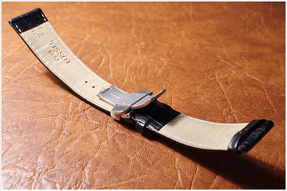 Через четыре недели после покупки новых (в "Конквесте") часов, оригинальная бабочка развалилась. Обратился в гарантийный сервис ("Часовой"), где мне её благополучно заменили на новую по гарантии. Пока ждал гарантийной замены, часы, разумеется, не носил. После замены по гарантии, часы одел один раз для проверки, после чего в этот же день поменял ремешок в сборе на Hirsch Carbon.