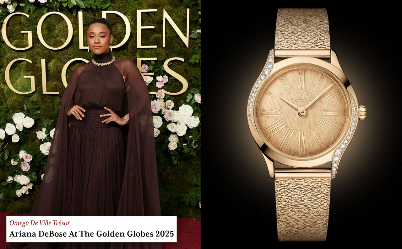 Еще одна обладательница Оскара, а также ведущая «Золотого глобуса» Ариана Дебос, дополнила свой образ часами OMEGA De Ville Trésor.