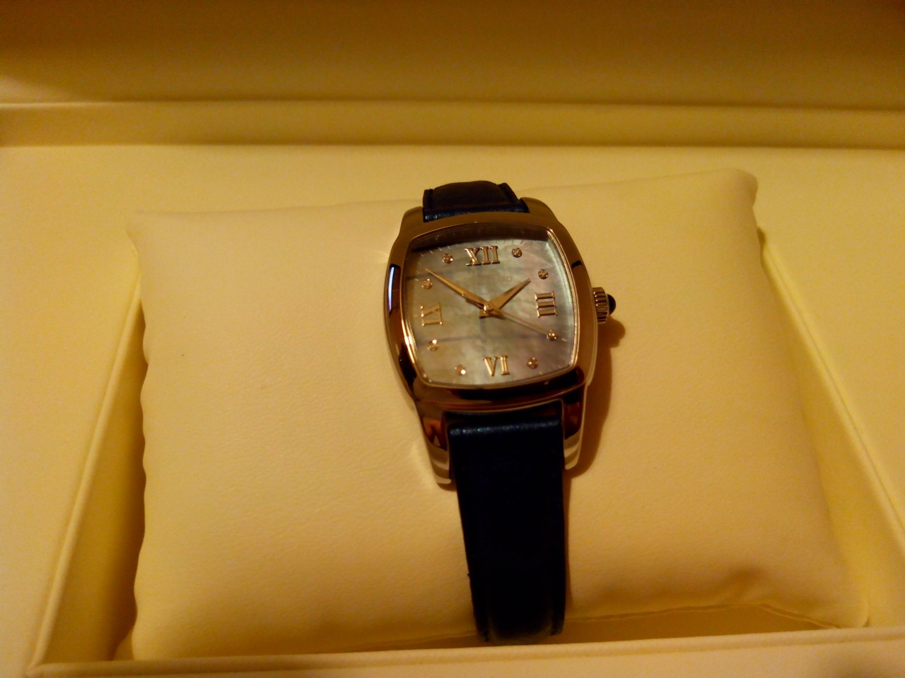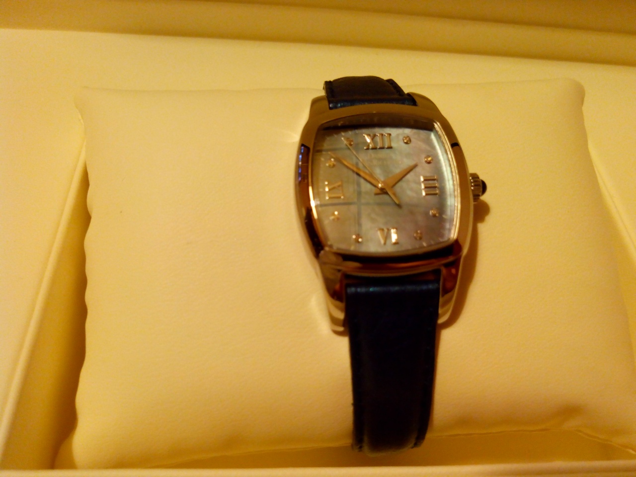 - циферблат из натурального перламутра - "меняет" цвет в зависимости от освещения, цвета ремня часов и даже цвета одежды Вашей Дамы!