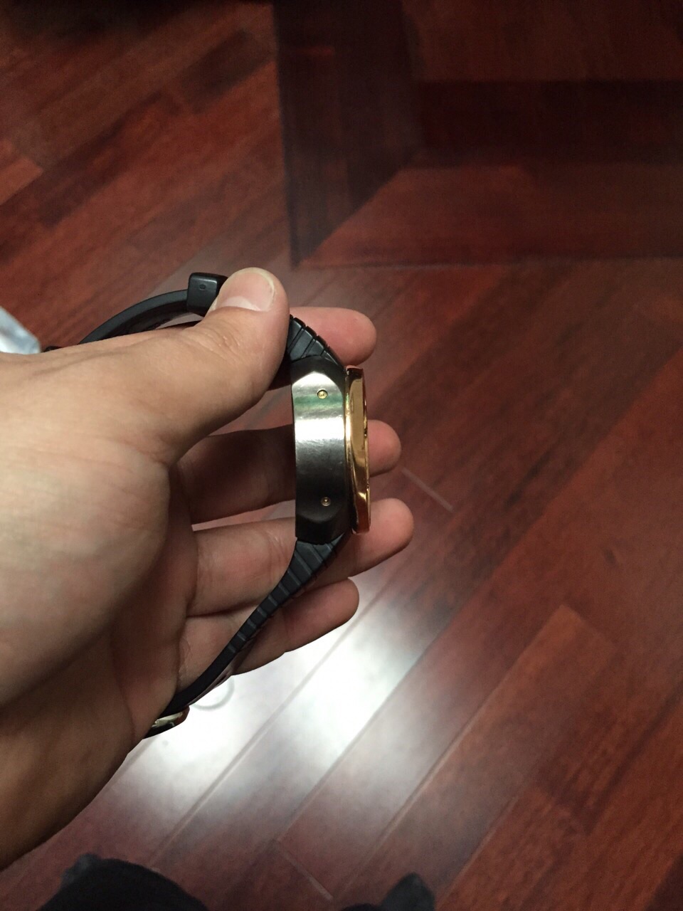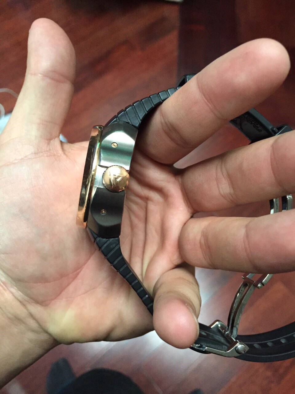 Ремешок каучук с золотой, 18к вставкой, раскладывающаяся застежка.