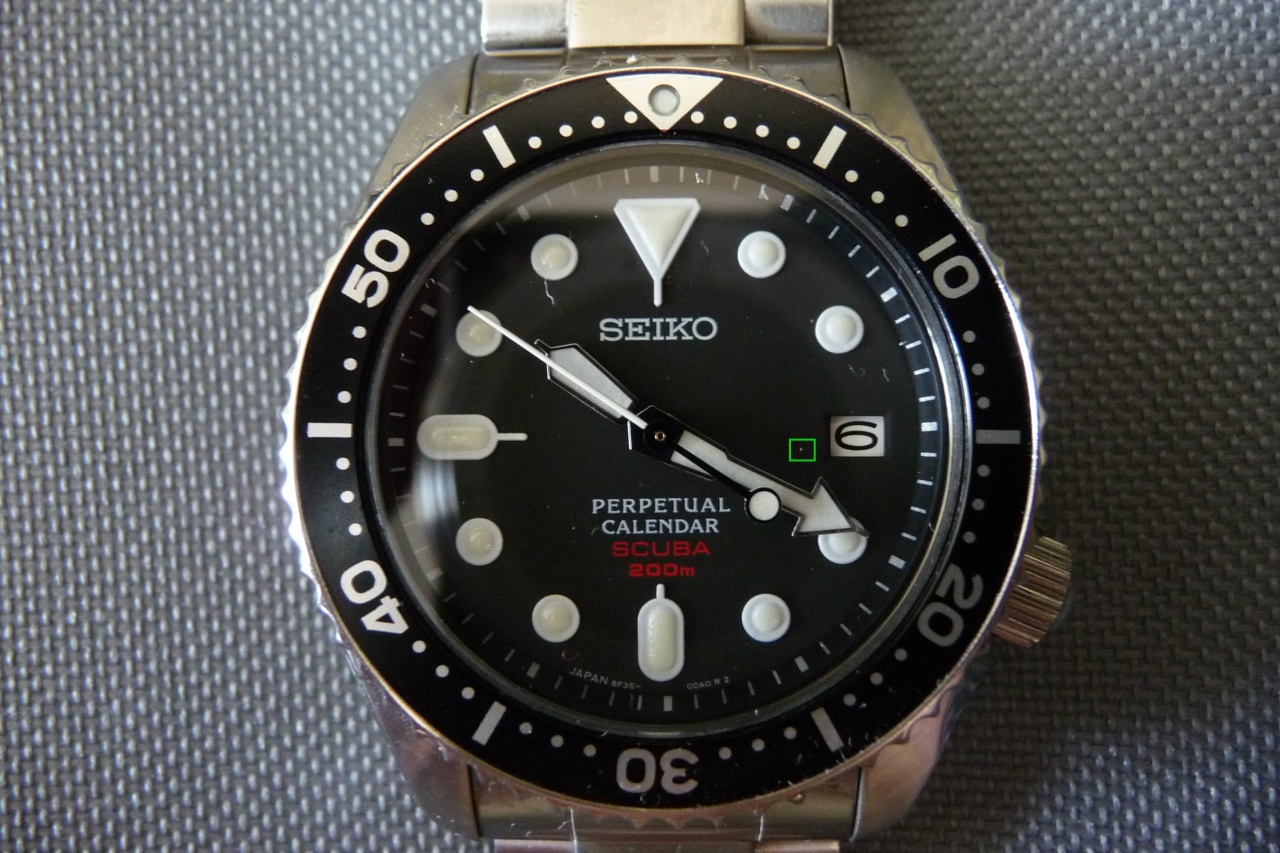 - Маленькая пылинка около даты изнутри стекла, была с момента покупки в 2012, с места не двигается. (в зеленом прямоугольнике)