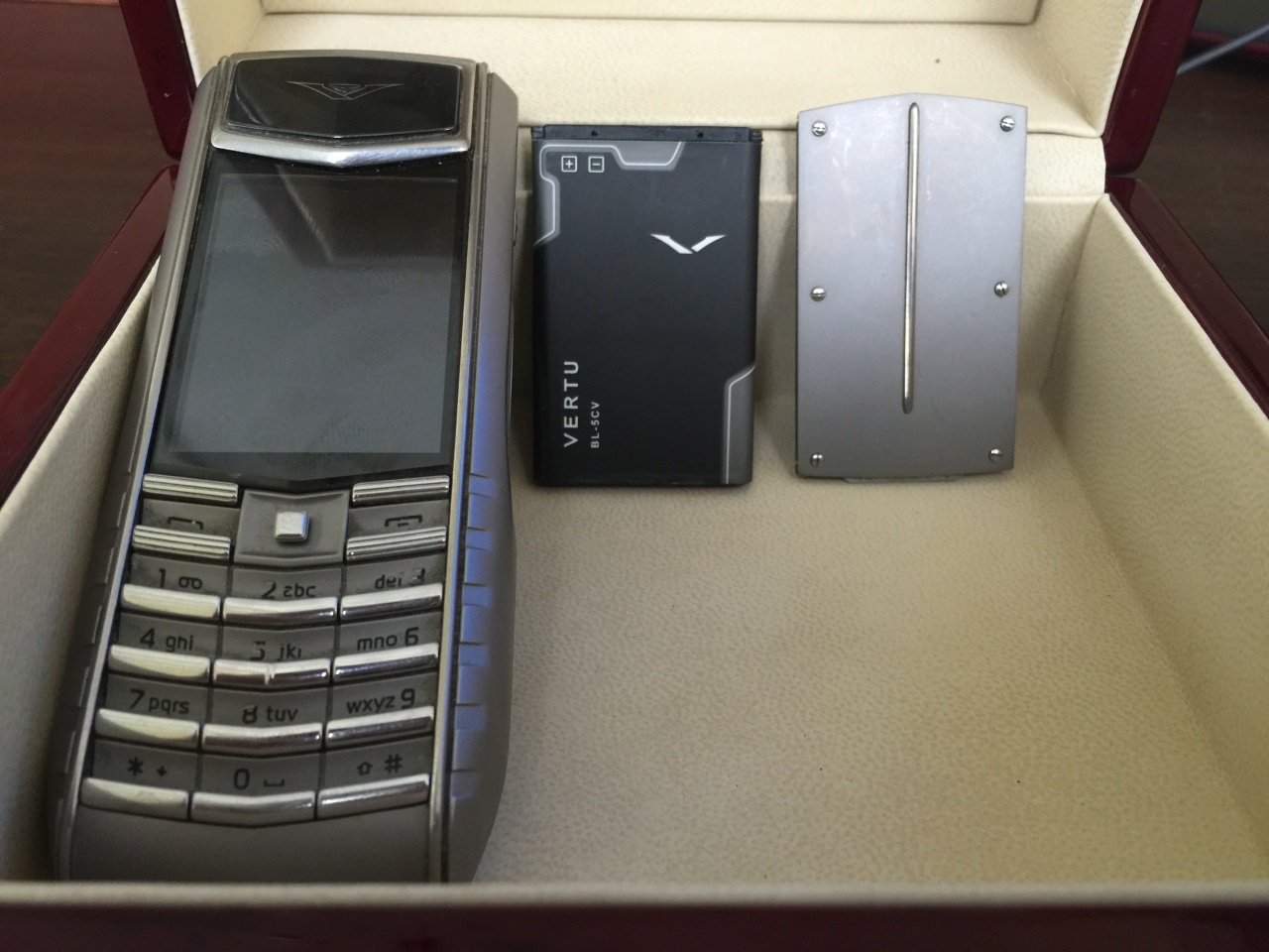 Полный комплект, кроме макулатуры. В комплекте - оригинальное сетевое зарядное устройство Vertu, оригинальная зарядка для автомобиля Vertu (покупалась за 118 евро), оригинальное хэндфри Vertu, оригинальный аккумулятор Vertu, оригинальный ключ для открытия задней крышки Vertu, оригинальная кожаная сумка-чехол Vertu (только чехол стоил 332 евро).