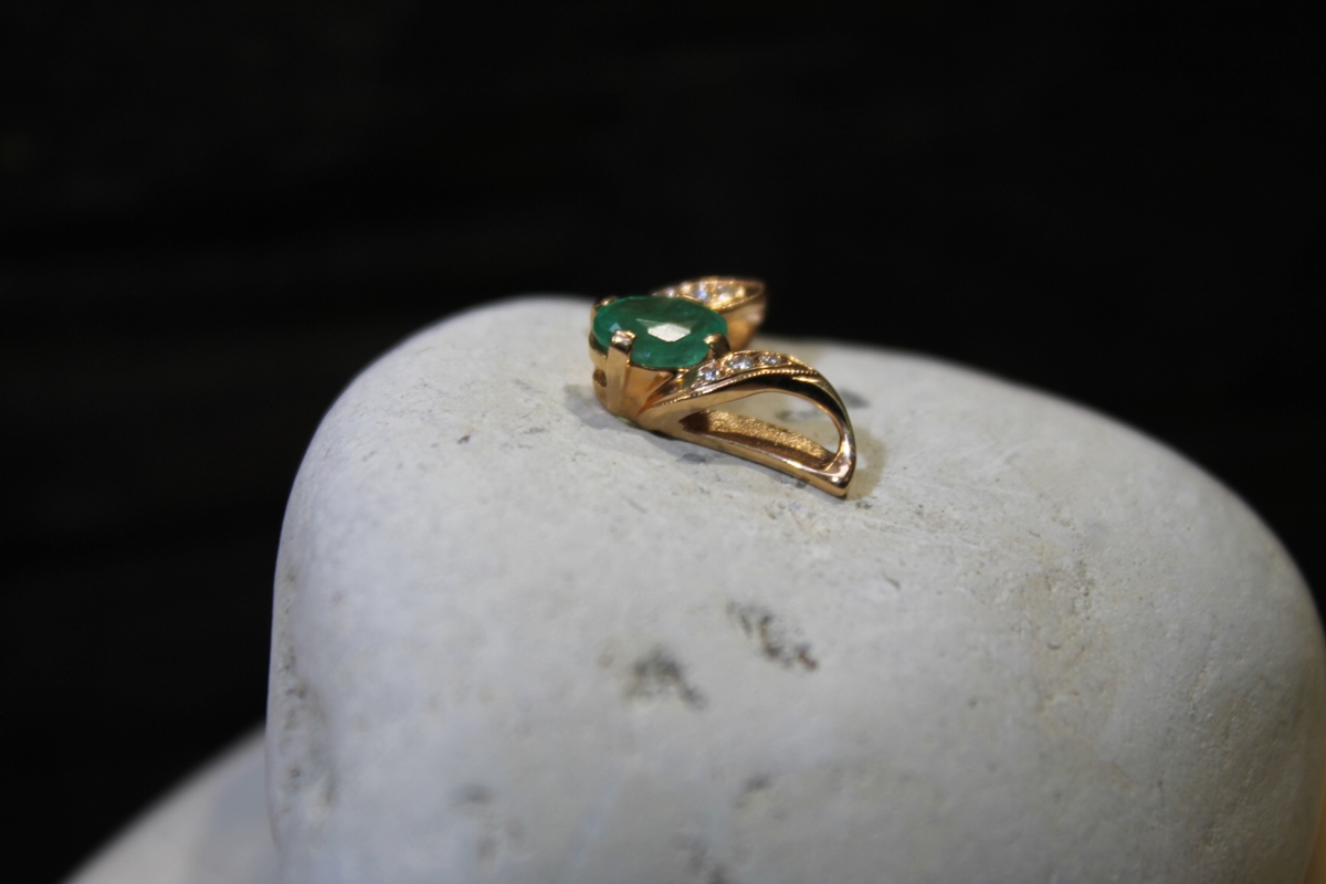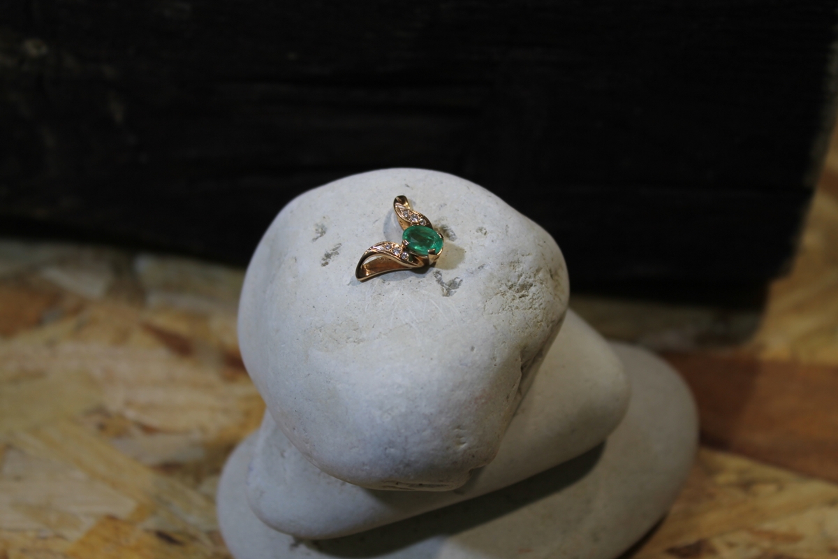 Золотая,Эксклюзивная подвеска с Изумрудом и Бриллиантами! 585 пр.