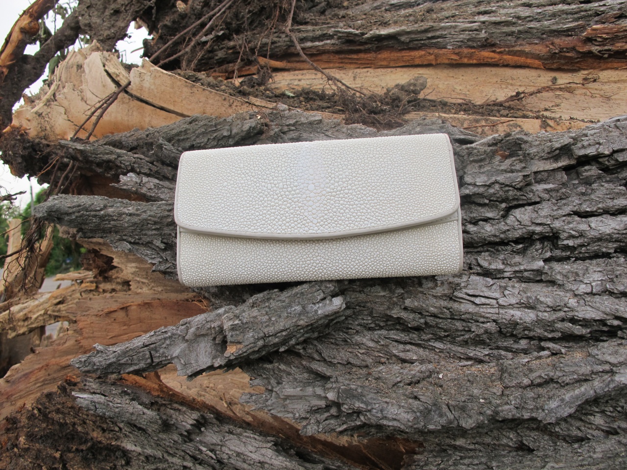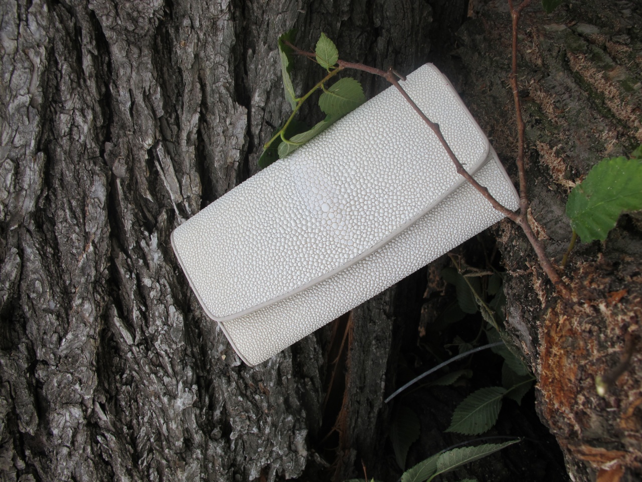 Эти все качества прекрасно сочетаются в кошельке из экзотической кожи ската. Достаточно большой, чтоб вместить все женские необходиомсти - разные дисконтные карты и много купюр, все, что так любят дамы