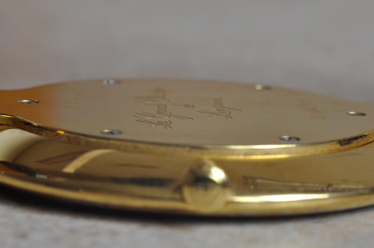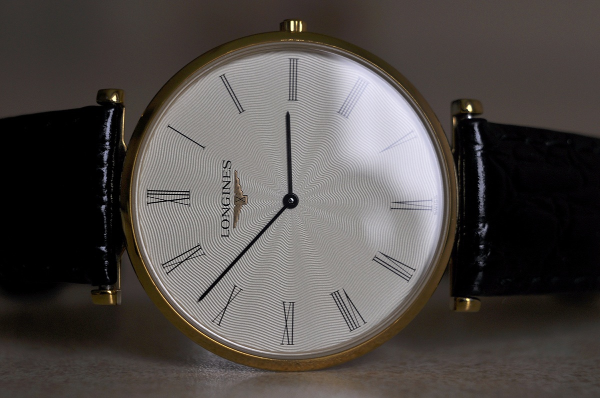 В идеальном состоянии легендарные La Grande Classique des Longines с редким рельефным циферблатом золотистого цвета.