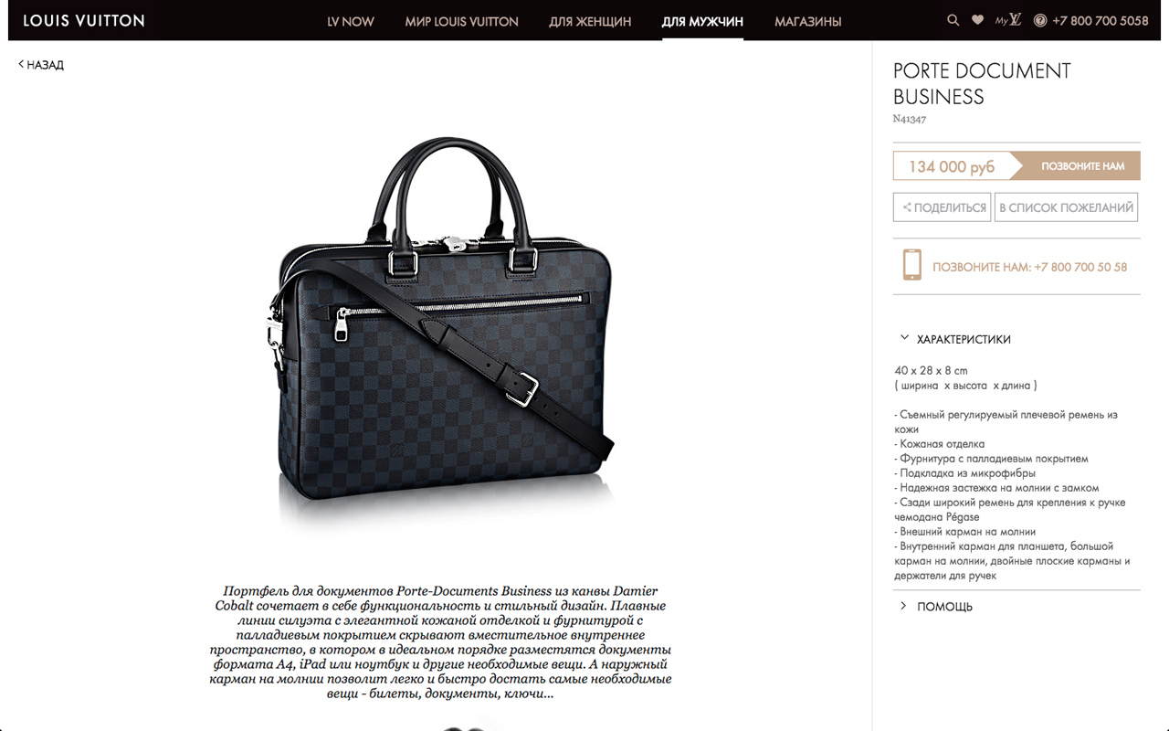 Расцветка Damier Cobalt появилась в прошлом году. Это самая новая расцветка узора-шашки в линейке LV. На вторичном рынке вещи в канве Damier Cobalt найти практически нереально. В России таких сумок вообще очень немного, это наиболее свежая и актуальная эксклюзивная мужская линейка.