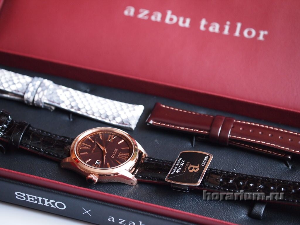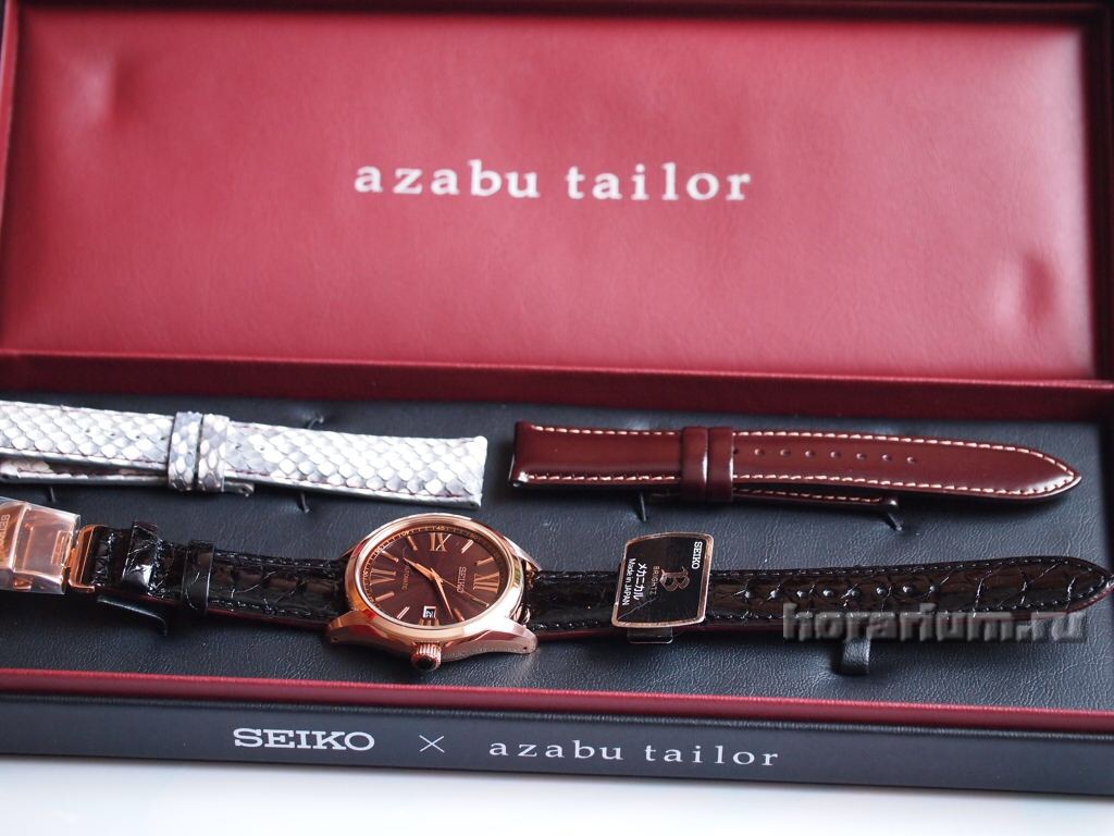 Ремешок: Натуральный крокодил чёрный, с тройной застежкой с кнопками + 2 дополнительных кожаных ремешка из кожи питона и коричневый телёнок.