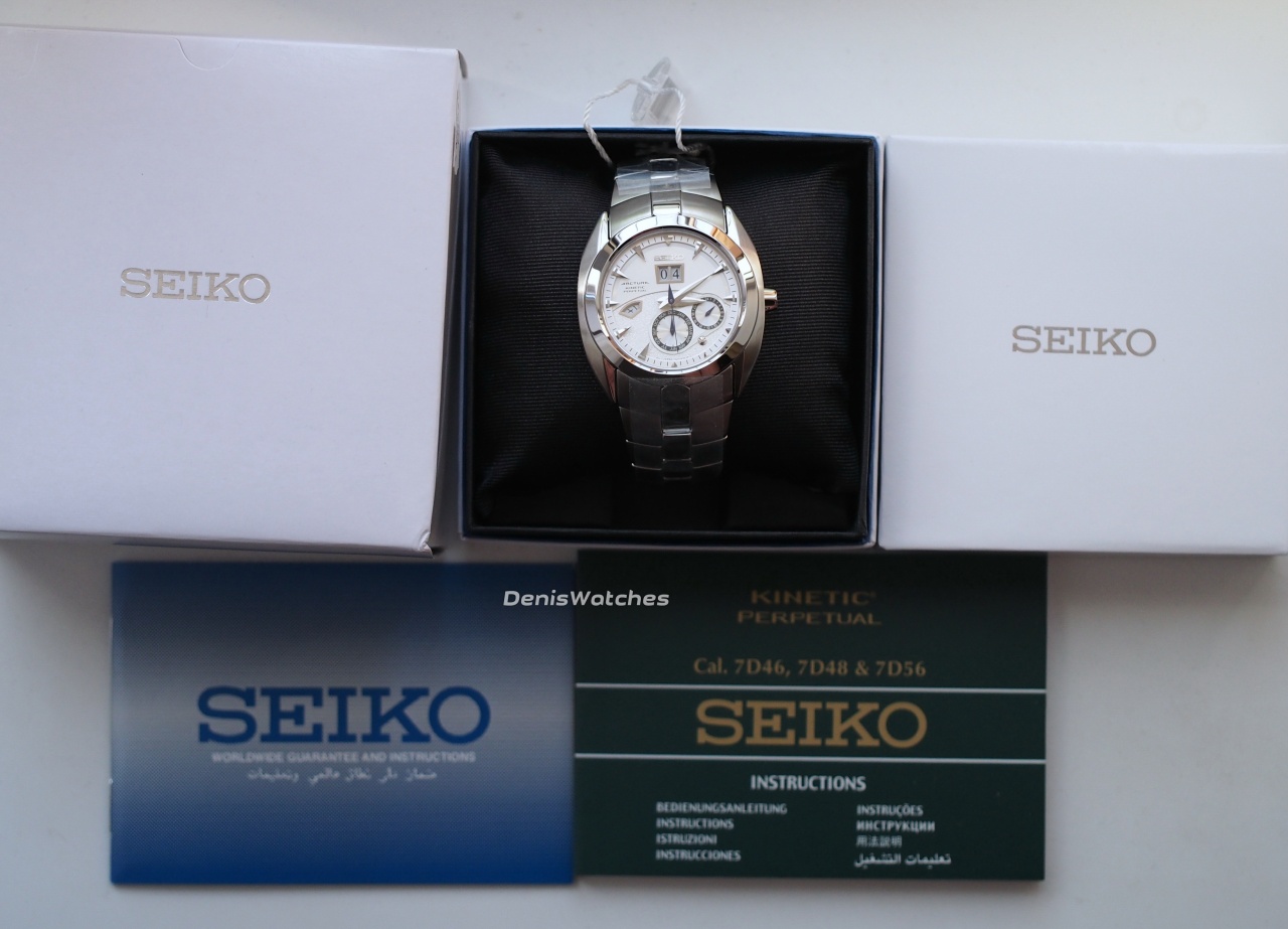 Часы автокварцевые(в данном механизме аккумулятор заряжается от движения руки), установлен топовый калибр 7D48, оснащенный усовершенствованной автоматической генераторной системой seiko kinetic с функцией сохранения энергии в течении 4х лет