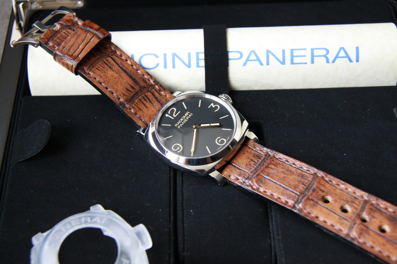 Ремень: Фирменный кожаный ремешок PANERAI с крупной пряжкой из стали.