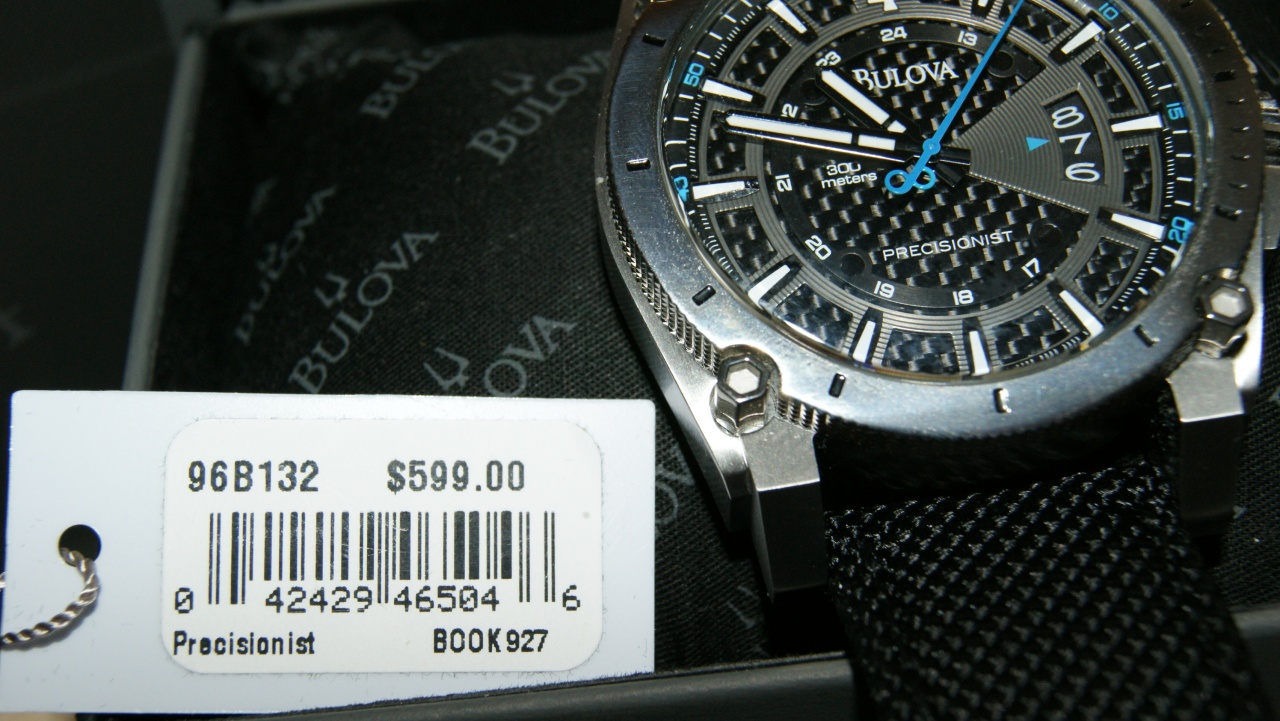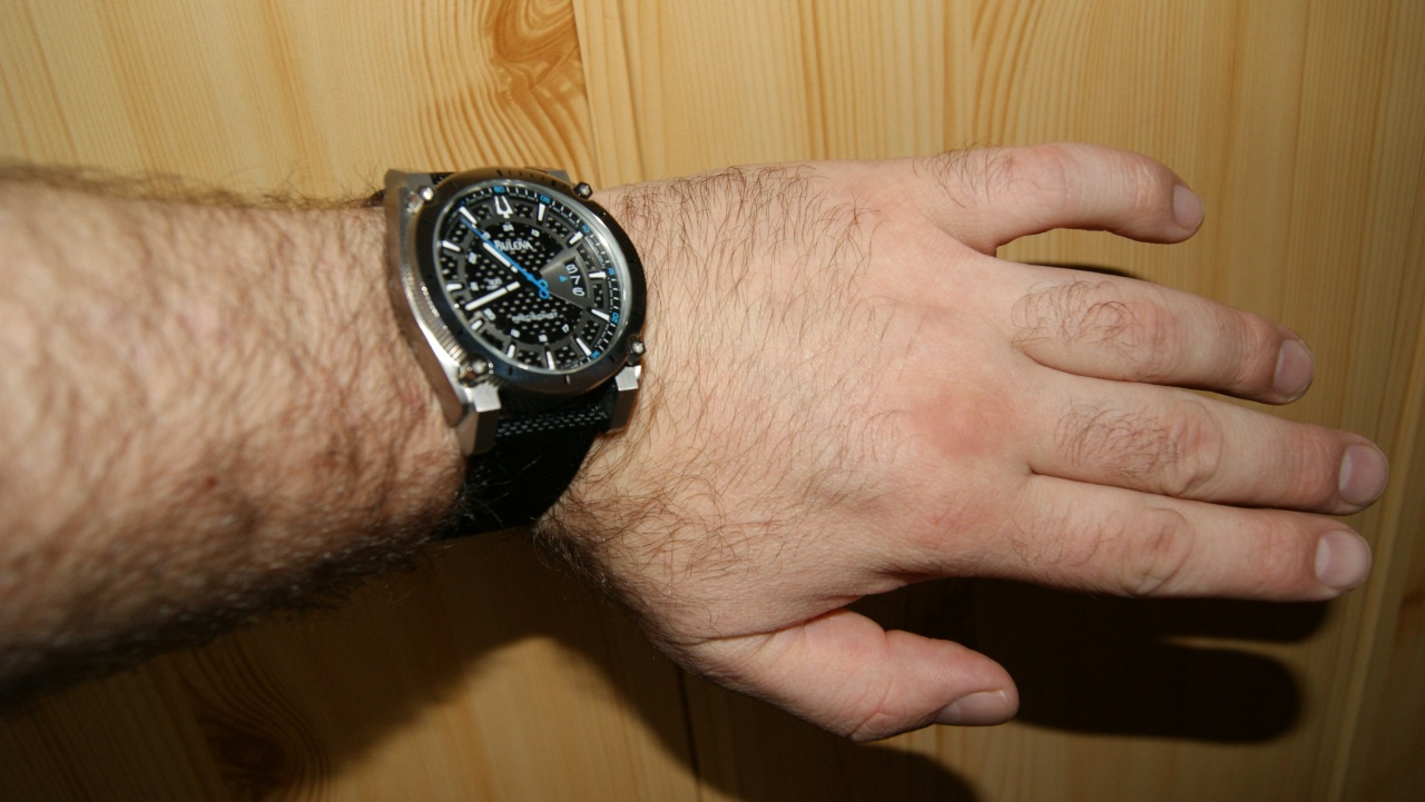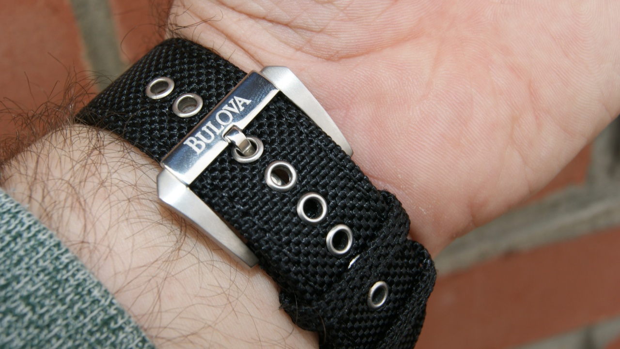 Прогрессирующая часовая болезнь, заставляет покупать всё новые игрушки. Очередными часами стали Bulova 96B132. Часы весьма внушительных габаритов 46х16. Стекло - минералка, изогнутое. Корпус - титан. За счёт этого и ремешка из ткани кордура, часы непривычно лёгкие. На стрелках и метках нанесен светонакопительный состав, после засветки фонарём очень быстро теряет яркость, впрочем остаточная светимость, хоть и с трудом, ночью позволяет разглядеть время. На Альфекс (фото), люм гораздо лучше. Циферблат - карбон. Имеет эффект объёма. При ярком свете выглядит весьма интересно. Уже заказал соответствующий ремень. Штатный тоже неплох, возможно и водозащитный, хотя я точно этого не знаю, вписывается в общий стиль часов - брутально технократический. Рубленные углы корпуса, шестигранные декоративные винты, безель с рифлением (невращающийся) придают часикам спортивный характер. WR 300 тоже атрибут часов для активного отдыха, правда с данной функцией есть интересная особенность, о которой я рассказываю в своём видеообзоре.