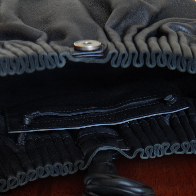 Мягчайшая кожа ягненка прекрасно драпирована, верх сумки - кожа собранная в гофре.