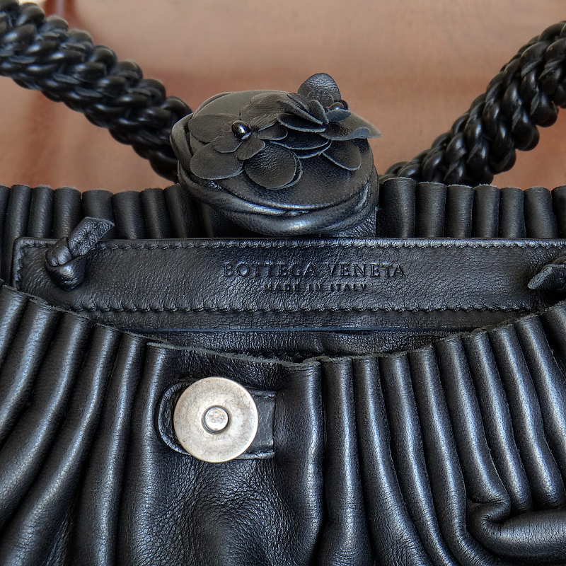 Естественно, в Боттеге не обошлись без демонстрации мастерства плетения - в данном случае необычно сделана ручка сумки, она имеет форму каната, сплетенного из множества прочных толстых кожаных ремешков.
