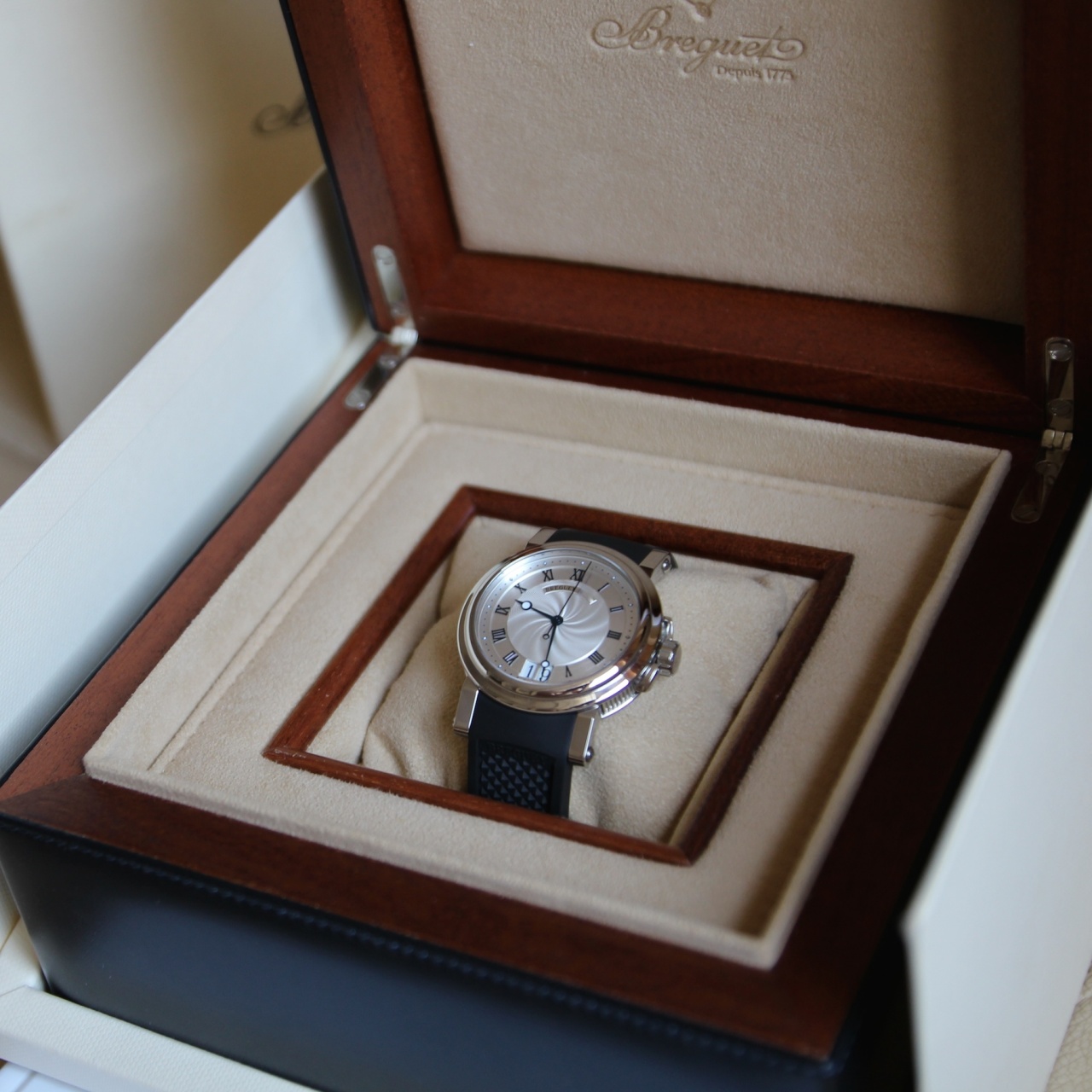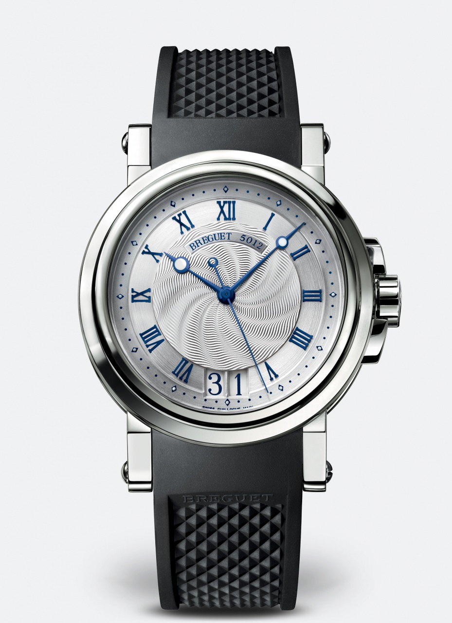 Продам часы Breguet Marine из стали. Автоматический механизм с большим указателем даты и центральной секундной стрелкой. Циферблат с гильошированным вручную узором. Задняя крышка из сапфирового стекла. Навинчивающаяся заводная головка. Водонепроницаемые до 10 бар (100 м).
