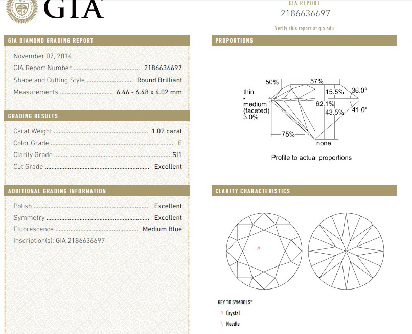 GIA - единственная лаборатория, которая не завышает параметры, сертификат можно проверить через интернет, бриллиант защищается от подделки нанесением лазерной инскрипции номера сертификата GIA на ободок бриллианта - рундист ( видно только в мощный микроскоп, при покупке можно прочитать).