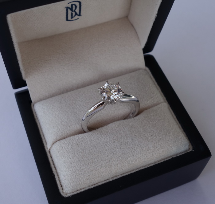 Кольцо BLUE NILE c чистым бриллиантом 1 карат, цвет E, сертификат GIA. Отличная цена!