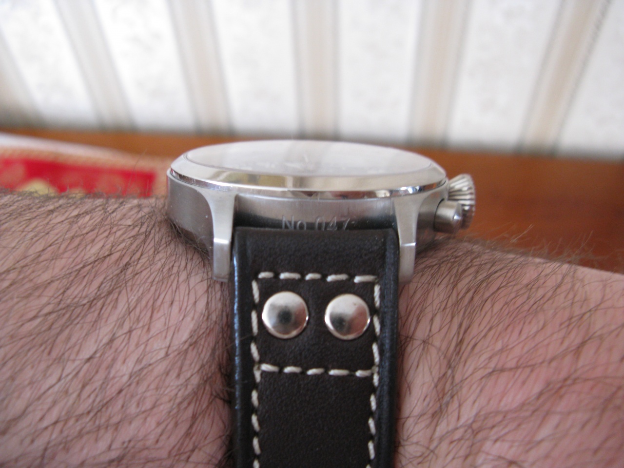 - номер часов выгравирован на корпусе - у меня 047. Если Гюнтер продаёт подряд по номерам, значит я 47-й фанатик, купивший эти часы. Насколько я знаю, он планировал сделать 750 штук, так что у желающих есть ещё шансы прикупить эти часы.