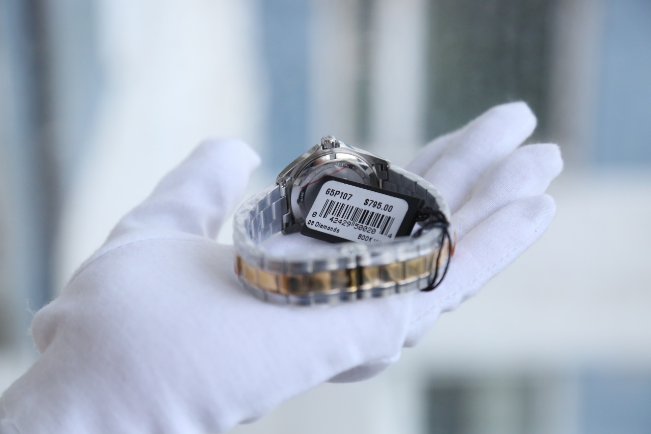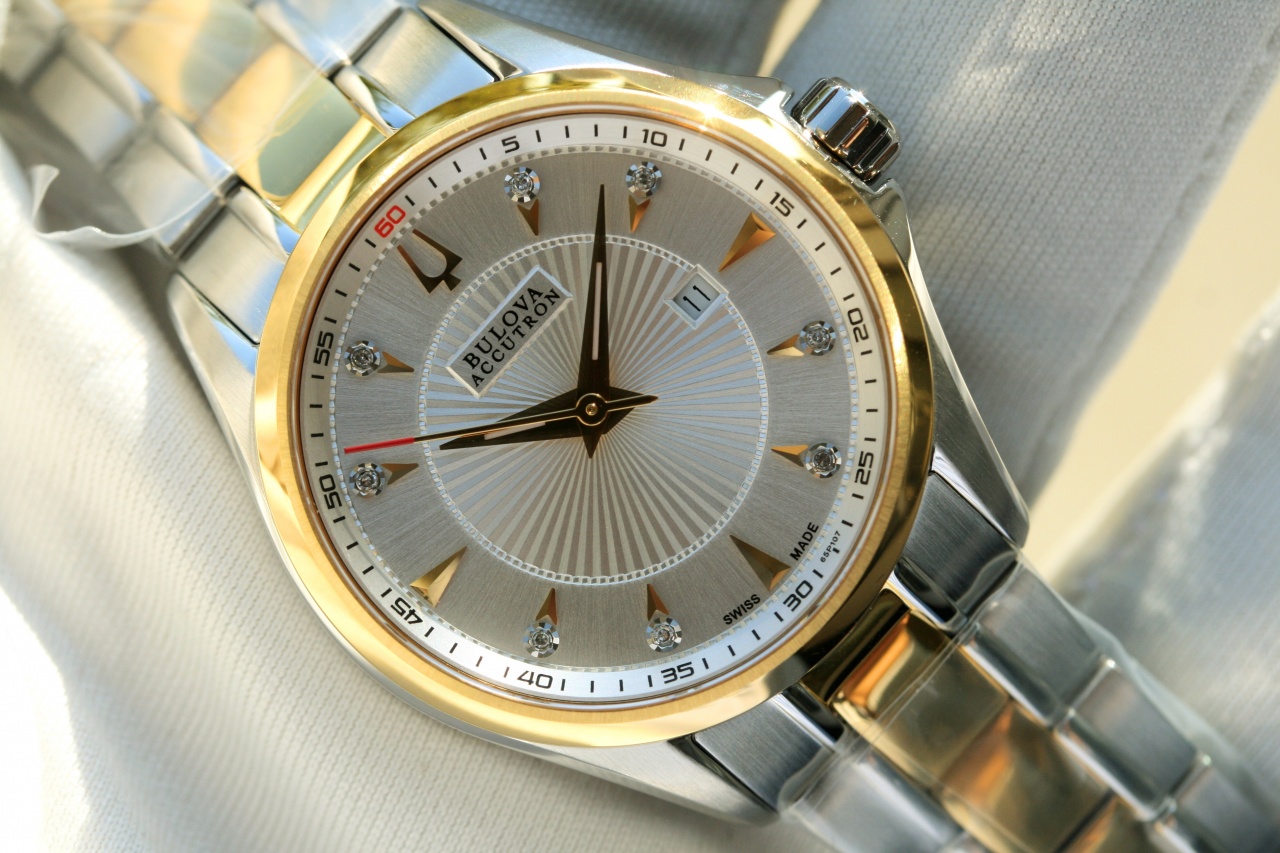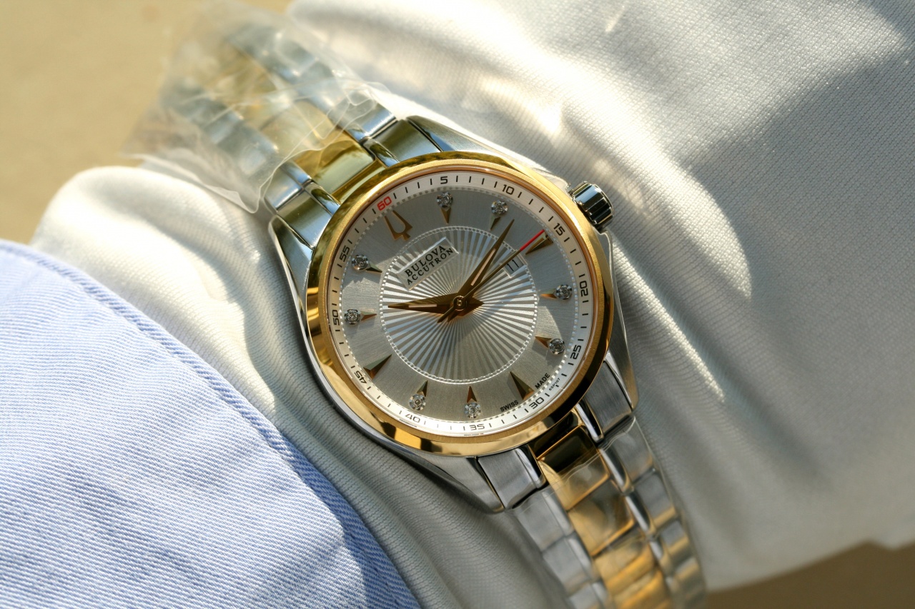 Материал корпуса и браслета: нержавеющая сталь, безель и центральные звенья - позолота, застежка на кнопке;