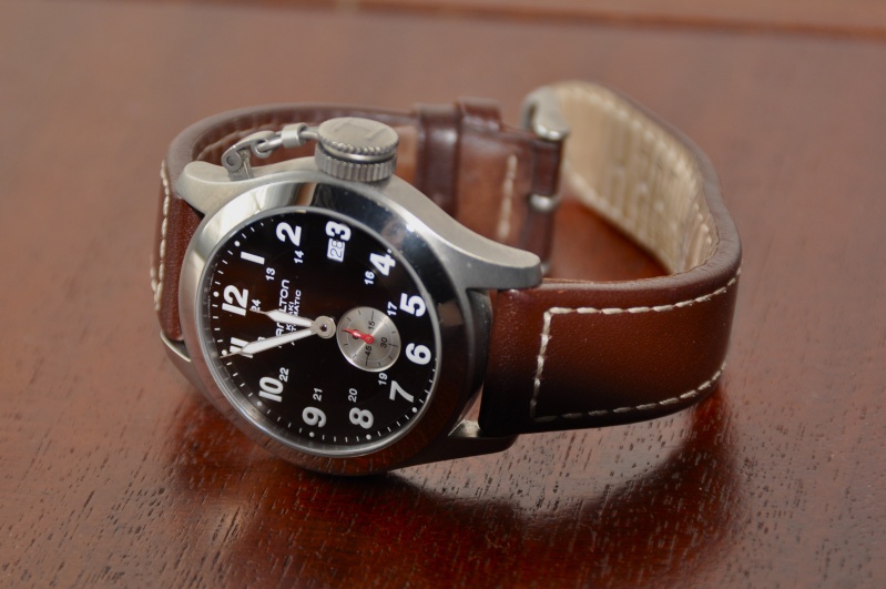 Часы Hamilton Hamilton Khaki Navy Frogman. Механика/ автомат ETA 2895-2. Титановый корпус и застежка ремешка. Водозащита 200 м. Кожаный коричневый ремешок. Сапфировое сферическое стекло. Диаметр без ключа - 40 мм. Реплика модели, выпускавшейся для ВМС США в годы Второй мировой войны (см. фото модели, вдохновившей на выпуск реплики).