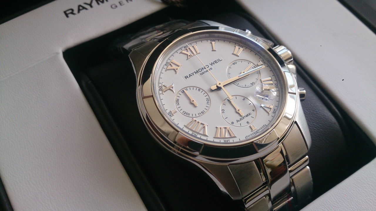 Продается отличный хронограф Raymond Weil Parsifal 7260-ST-00308 на калибре 2892-а2 + модуль DD 2021 на 57 камнях. Калибр в итоге достаточно тонкий (6,9 мм), поэтому часы в отличие от многих хронов не выглядят громоздко. Потрясающее сочетание полированных и сатинированных поверхностей как на корпусе так и на браслете. Сапфир с двойным антибликом.