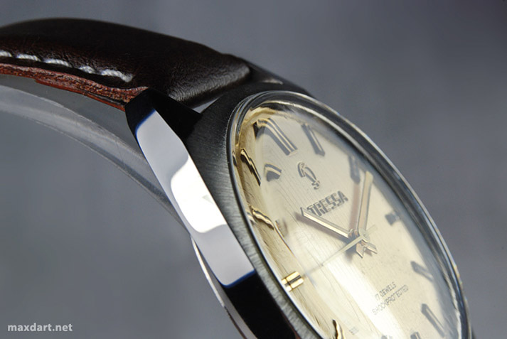 60-х годов выпуска. Swiss made. Редкой сохранности. Из коллекции. Механика с ручным заводом. Часы солидных размеров (между дужками 40 мм и 37 мм с короной завода), при этом толщина весьма небольшая. Эти красавцы - один из редких случаев, когда винтаж смотрится весьма актуально и сегодня. С этими часами и в таком состоянии Вы не останетесь без внимания. Отдавались недавно на чистку и смазку. Отзывы мастера очень хорошие. Внутри корпуса добротный и надежный механизм AS 1950/51: