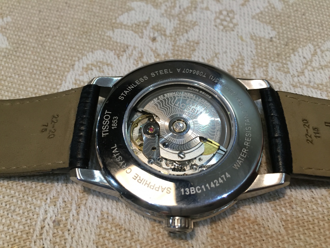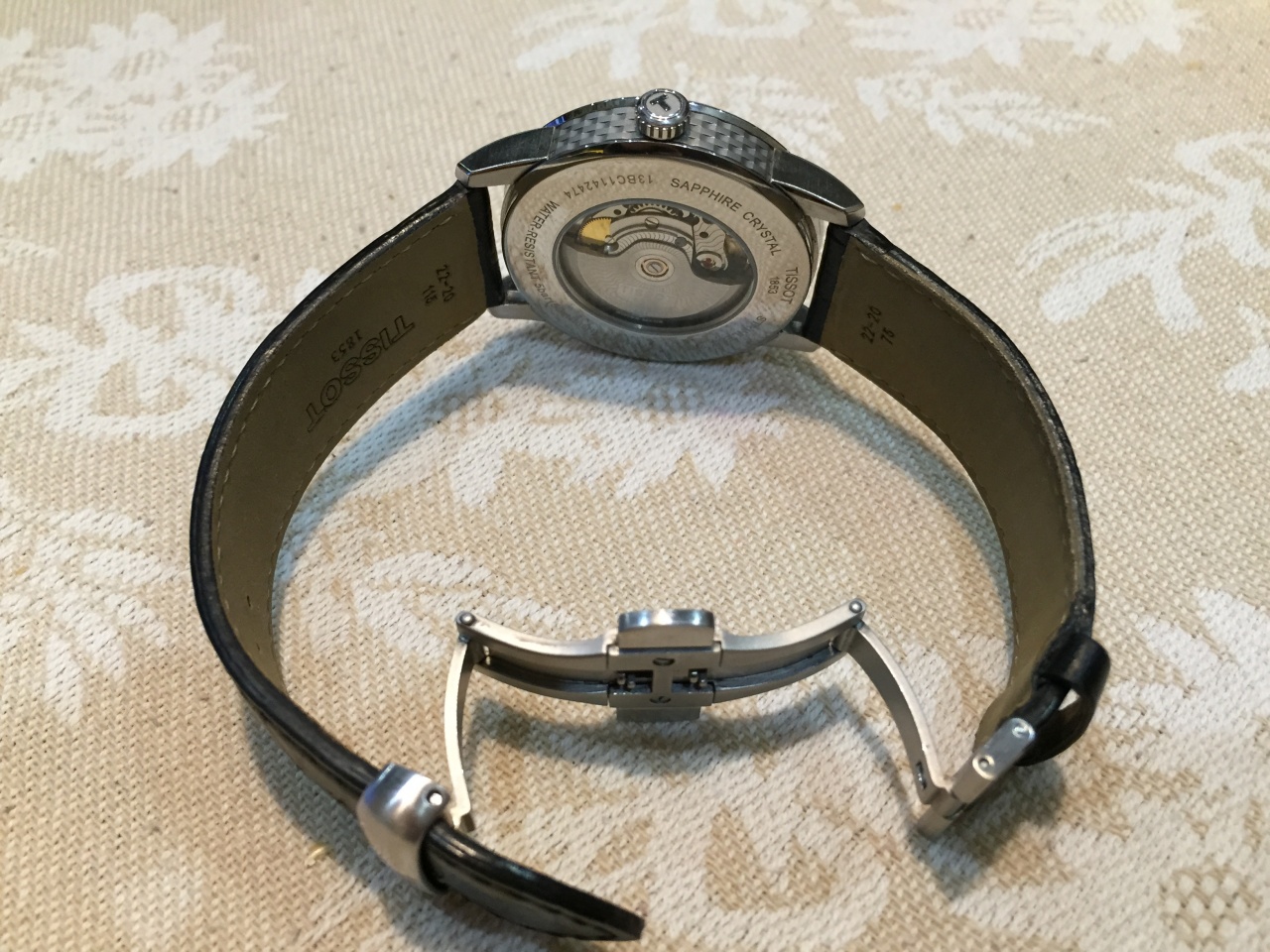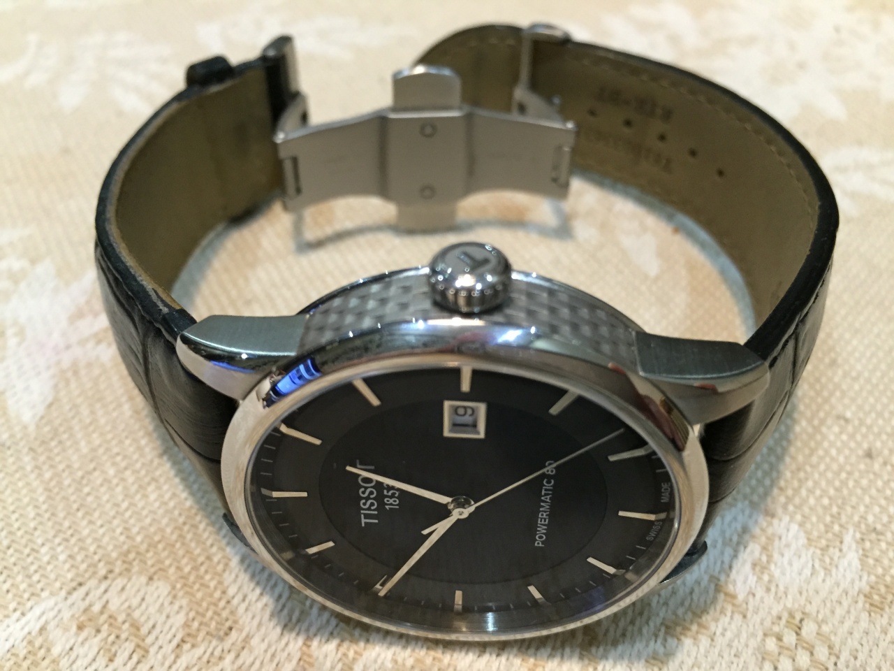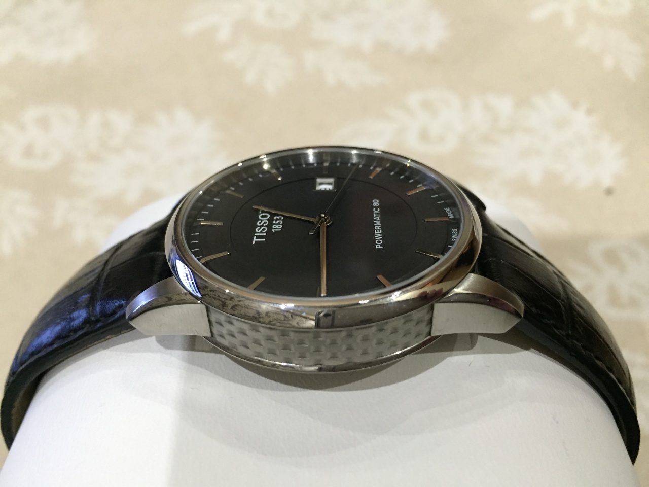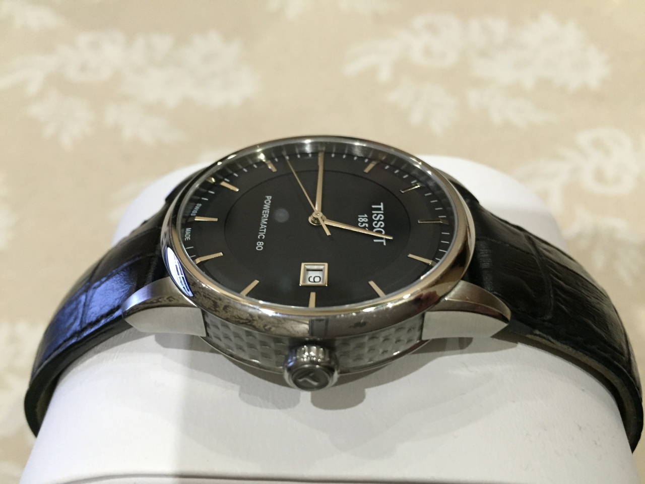 Tissot Powermatic 80. Диаметр 41 mm. Классическая модель, выполненная из нержавеющей стали на кожаном черном ремешке с застежкой-бабочкой. Сапфировое стекло на задней крышке позволяет видеть работу механизма Powermatic 80. Уникальностью "сердца" этих часов с является беспрецедентный запас хода, который составляет