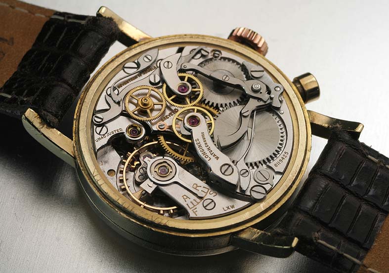 Да, зачетная машинка - Longines 12.68Z Chronostop из первых выпусков. Однокнопочный flayback, созданный на основе этого механизма: http://www.ranfft.de/cgi-bin/bidfun-...ongines_12_68Z.