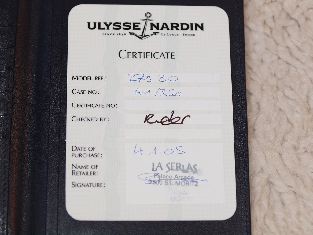 Хронометр прошёл строгое тестирование в соответствии со Швейцарской Официальной Системой Контроля Хронометров, которая удостоверяет надежность и точность часов и получил сертификат C.O.S.C.