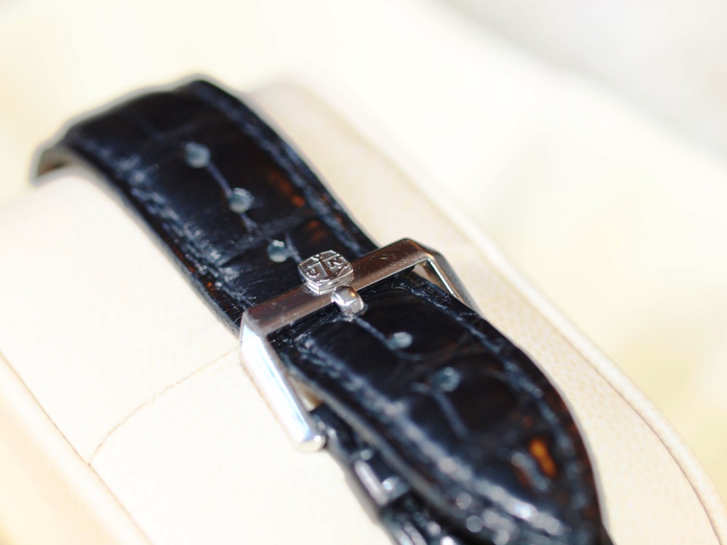 Корпус из платины 950 пробы водостойкий до 50 метров и снабжен фиксируемой на резьбе заводной головкой. Сапфировое стекло обрабатывается с обеих сторон антибликовым покрытием. Каждый корпус имеет индивидуальный номер.