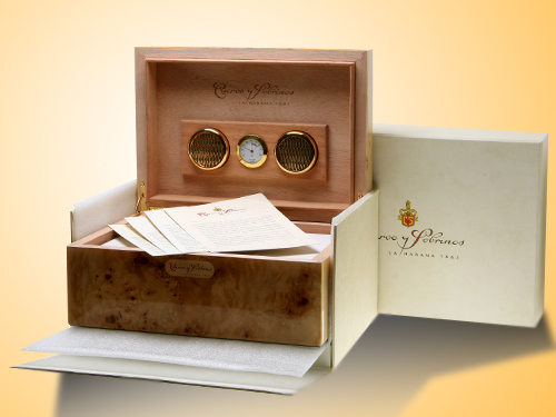 Сигары, ставшие визитной карточкой Кубы нашли свое отражение и в коллекциях Cuervo y Sobrines. Во-первых, каждая модель часов упакована в персональный хьюмидор (ящик для хранения сигар). Хьюмидор отнюдь не декоративный, а самый что ни на есть настоящий, сделанный из специальных пород дерева и позолоченных металлических деталей. Во-вторых, у циферблатов некоторых моделей цвет табачного листа и визуальная имитация фактуры традиционной кальки, которую прокладывают между сигарами в хьюмидоре. В-третьих, многие модели часов Cuervo y Sobrines носят название сигарных форматов: Torpedo, Prominente, Esplendidos, Robusto.
