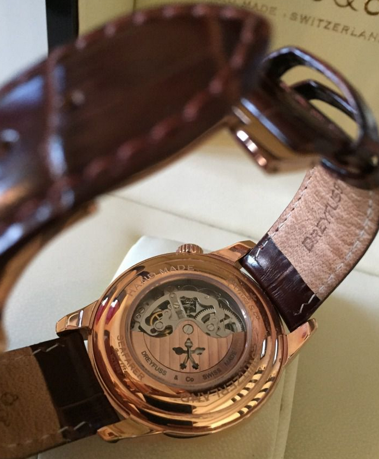 Новые, носились пару раз. Модель 1925 DGS00093/01, сделаны в ручную в Швейцарии. Механика с автоподзаводом, корпус из стали, размер корпуса 42мм, сапфировые стекла сперед и сзади, браслет из натуральной коричневой кожи с пропиткой запахом ореха, водозащита Seafarer Standard.