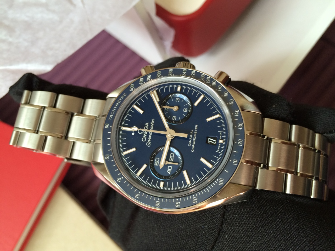 В неспешной продаже легкие титановые Лунные часы MOONWATCH OMEGA CO-AXIAL CHRONOGRAPH 44,25 ММ (311.90.44.51.03.001).