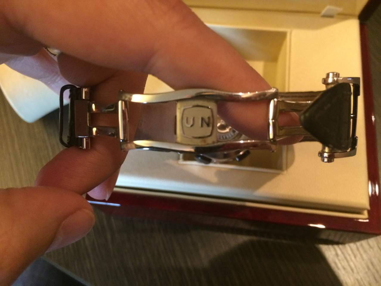 Тип механизма: механический с автоподзаводом; Калибр: UN-24; Корпус: сталь; Циферблат: черный; Браслет: кожа; Водозащита: 100метров; Подсветка: люминесцентные стрелки и метки; Стекло: сапфировое; Календарь: число(большая дата); Габаритные размеры: D 43мм.