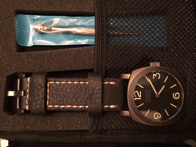 Корпус черный PVD. Ремешок толстый, внешне грубый, но мягкий.