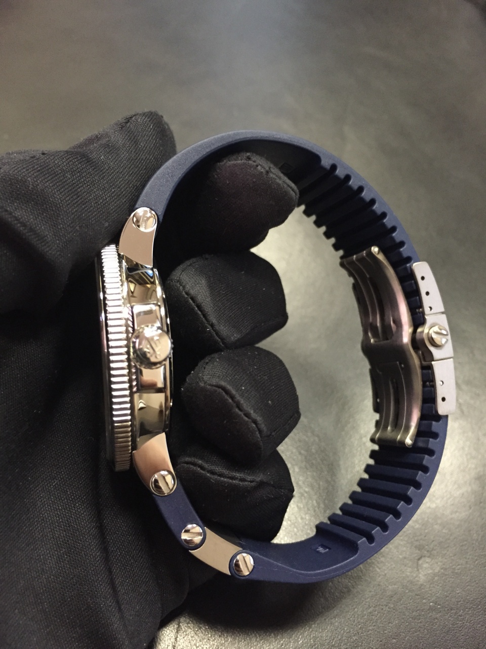 Описание: Модель из коллекции Maxi Marine. Корпус из нержавеющей стали. Диаметр корпуса 41 мм. Синий циферблат с арабскими цифрами. Хронометр сертифицирован COSC (Швейцарским Институтом Тестирования Хронометров). Механические часы с автоподзаводом. Индикатор запаса хода. Секундная стрелка на дополнительном циферблате. Каучуковый ремешок с титановыми вставками. Запас хода около 42 часов. Раскладывающаяся застежка. Водонепроницаемость 200 метров.