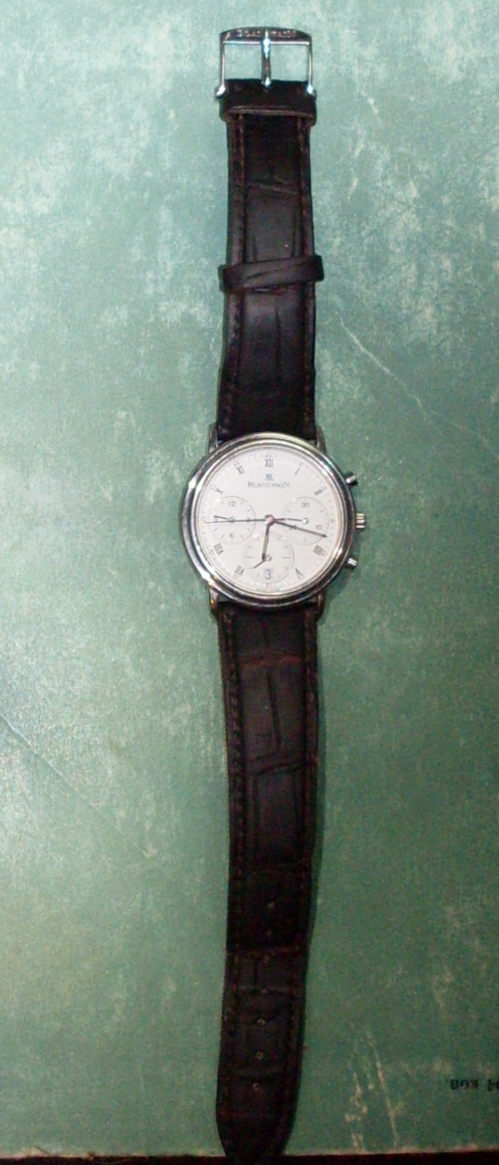 продам хронограф blancpain. Внутри не какая ни будь убогая эта. Механизм FREDERIC PIGUET. Номерные - лимитированная серия. Корпус нержавейка. Автоподзавод. Внешне без явных дефектов. На отличном ходу. В комплекте часы и родная застежка. Ремешок надо менять. Документов нет. Модель Blancpain Villeret Chronographe. Калибр внутрях ихний мануфактурный 1185.