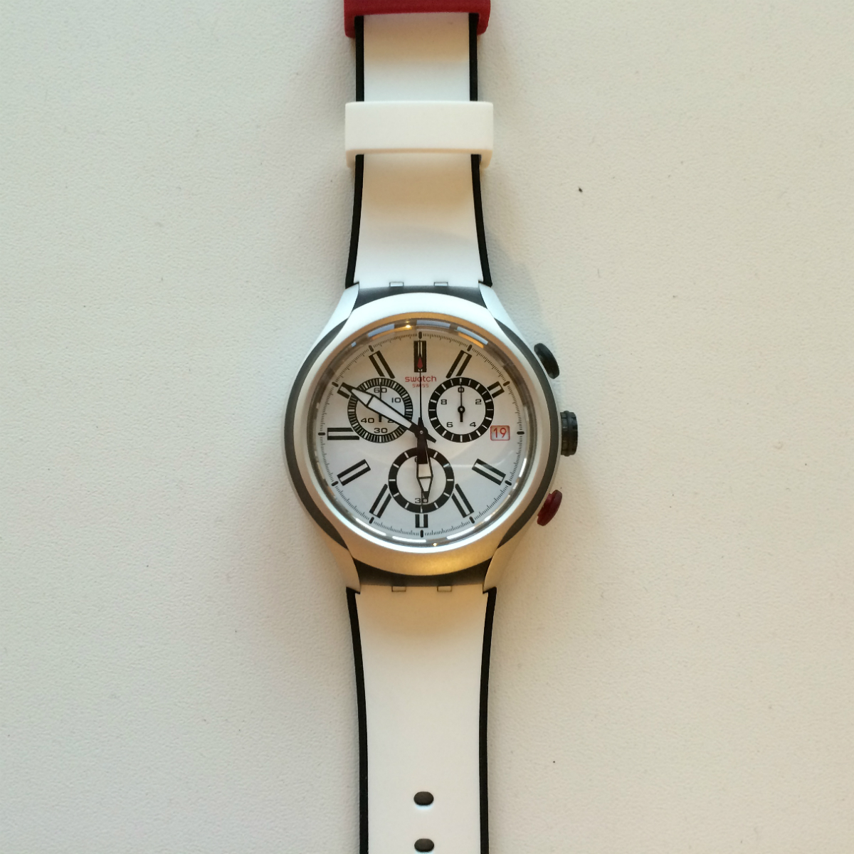 Очень стильный кварцевый хронограф с корпусом из алюминия. Крупные стрелки, отличная читаемость.