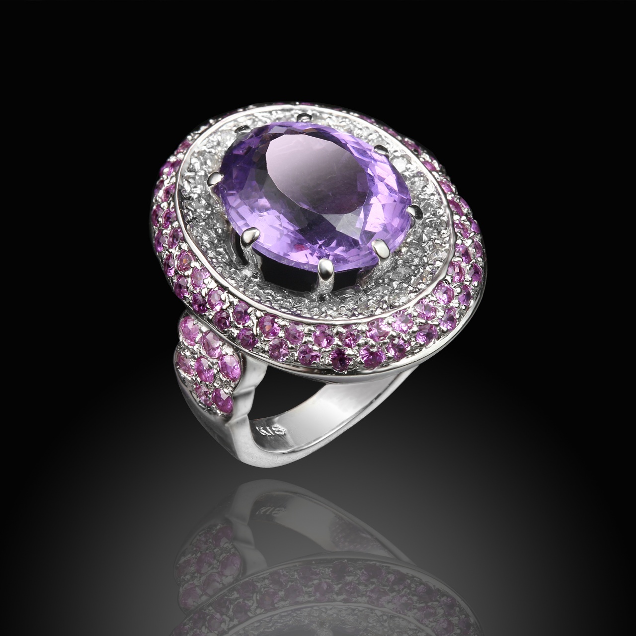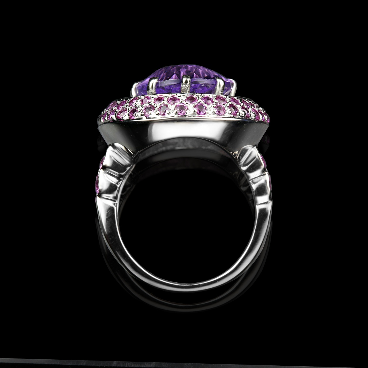 ~~~Кольцо из белого золота с аметистом, сапфирами и бриллиантами общим весом 9,27 карат~~~