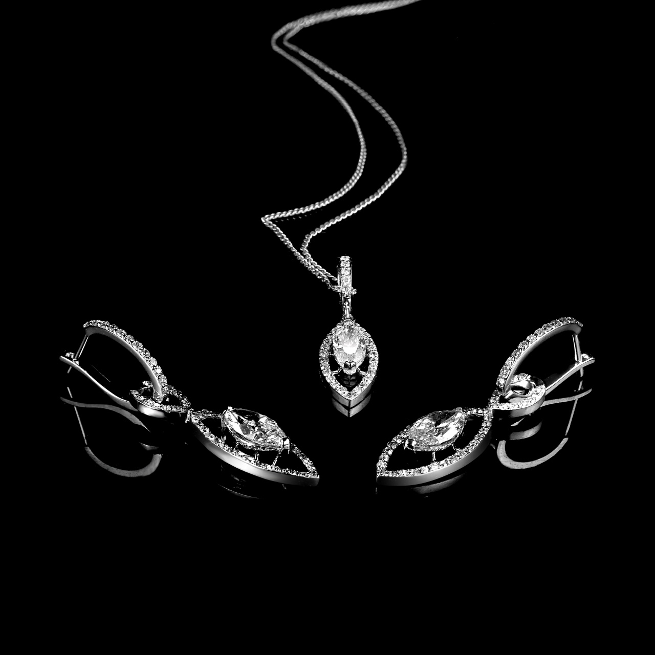 В продаже великолепный комплект (серьги и подвеска) из белого золота с бриллиантами 2,87 карат.