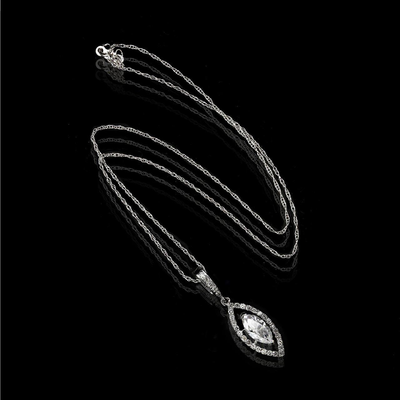 Бриллиант в подвеске: огранка "Маркиз", вес 0.56 карат, цвет D (1), чистота I1 (8)