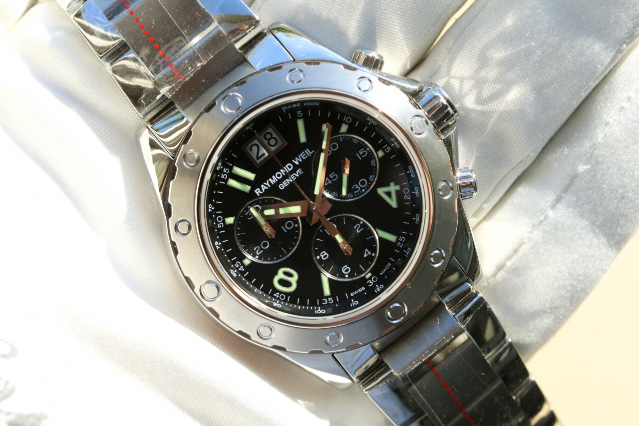< < [хронограф 41 мм] RAYMOND WEIL SPORT * черный цифер * большая дата * браслет ** -60% > >