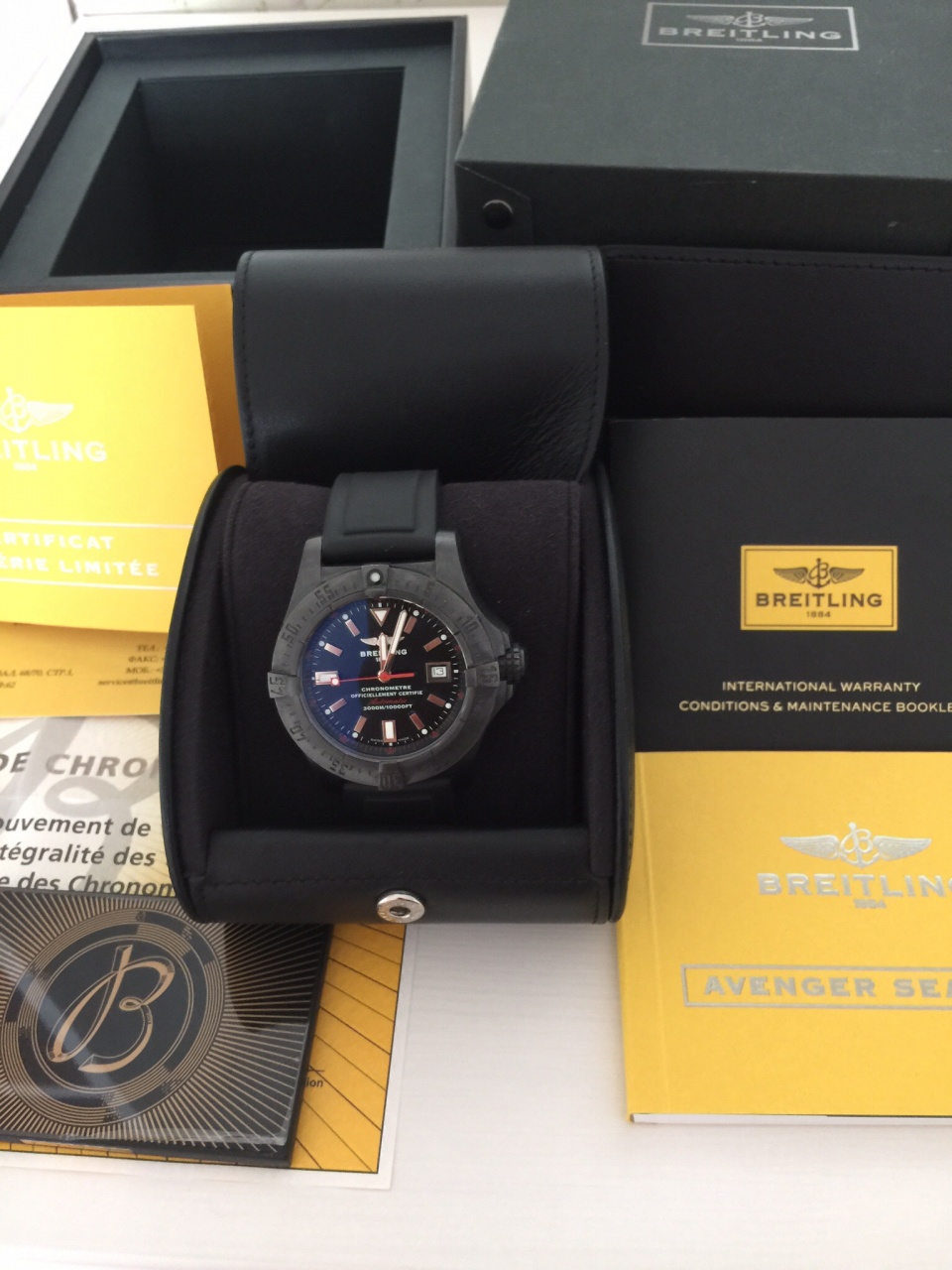 Предлагаю к продаже брутальные 45мм Breitling Avenger Seawolf Steel LE М1733010. Часы куплены в России в 2013 году. Все документы и карточки , как при покупке в магазине. Уже с электронной картой нового образца. Часы в великолепном состоянии, носились крайне мало и аккуратно. Каучук не обрезан и подойдет даже на очень большое запястье.