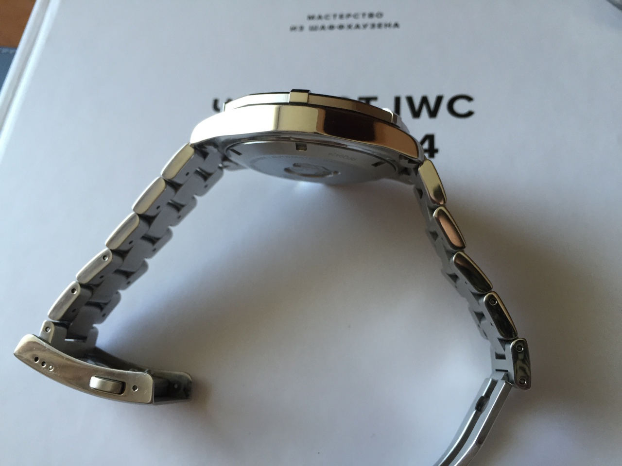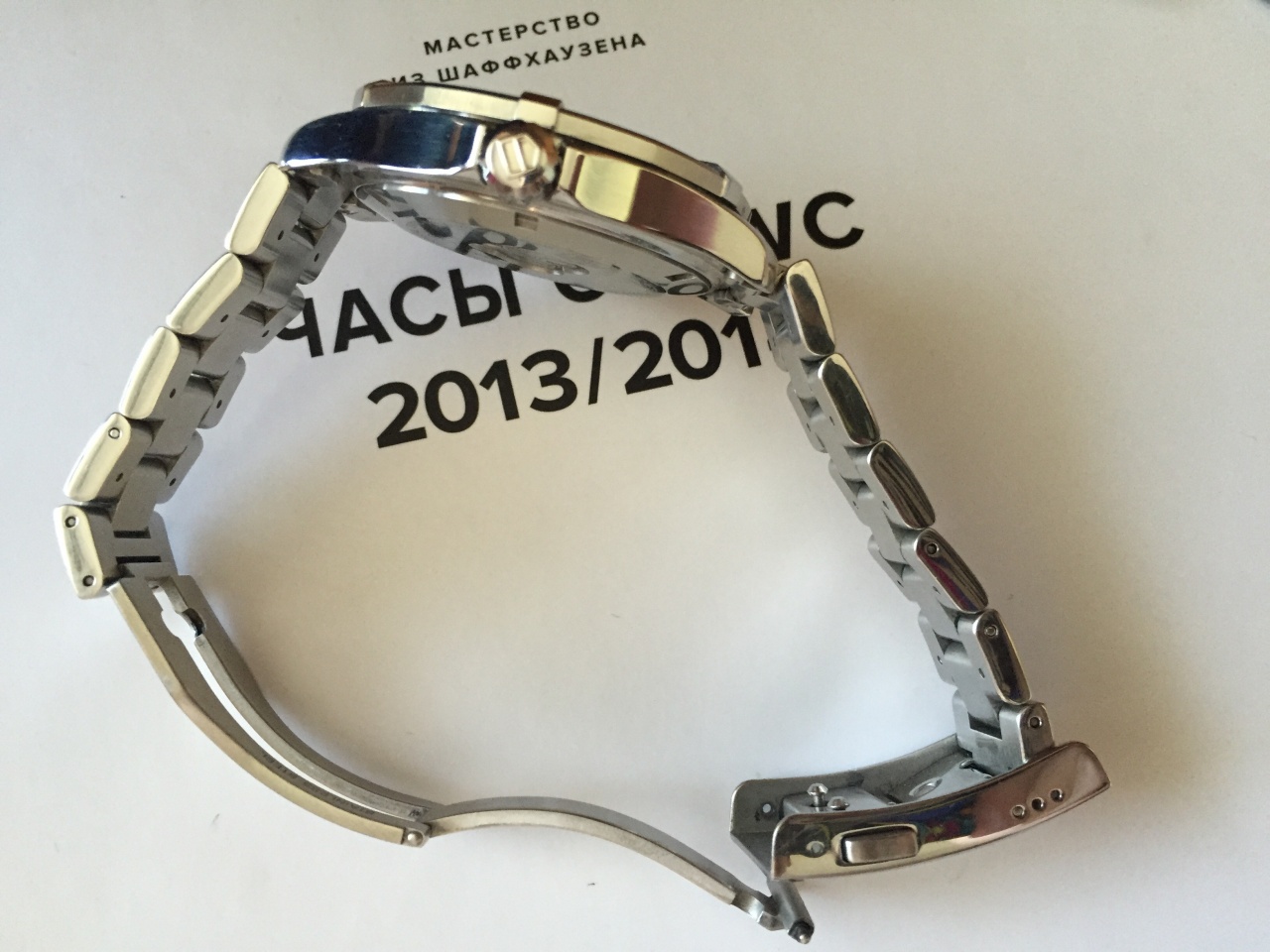 На полированных частях корпуса и браслета следов практически нет. Присутствуют потертости на застежке и центральном звене верхней части браслета, т.к. носились на правой руке. На отметке "10" есть две тоненькие царапинки-волоски, видны только под определенным углом.