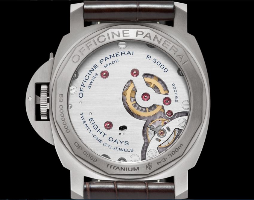 Механизм: Механический с ручным заводом, калибр P.5000, производство Panerai, 15? линии, толщина 4,5 мм, 21 камень,