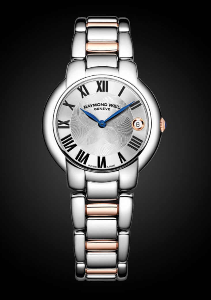 Полированная сталь и розовое золото соседствуют на браслете, заводной головке и в окаймлении окошка указания даты, расположенном возле деления 3 часов. Синие стрелки нежно касаются черных римских цифр, которые вносят нотки классики в эту модель.