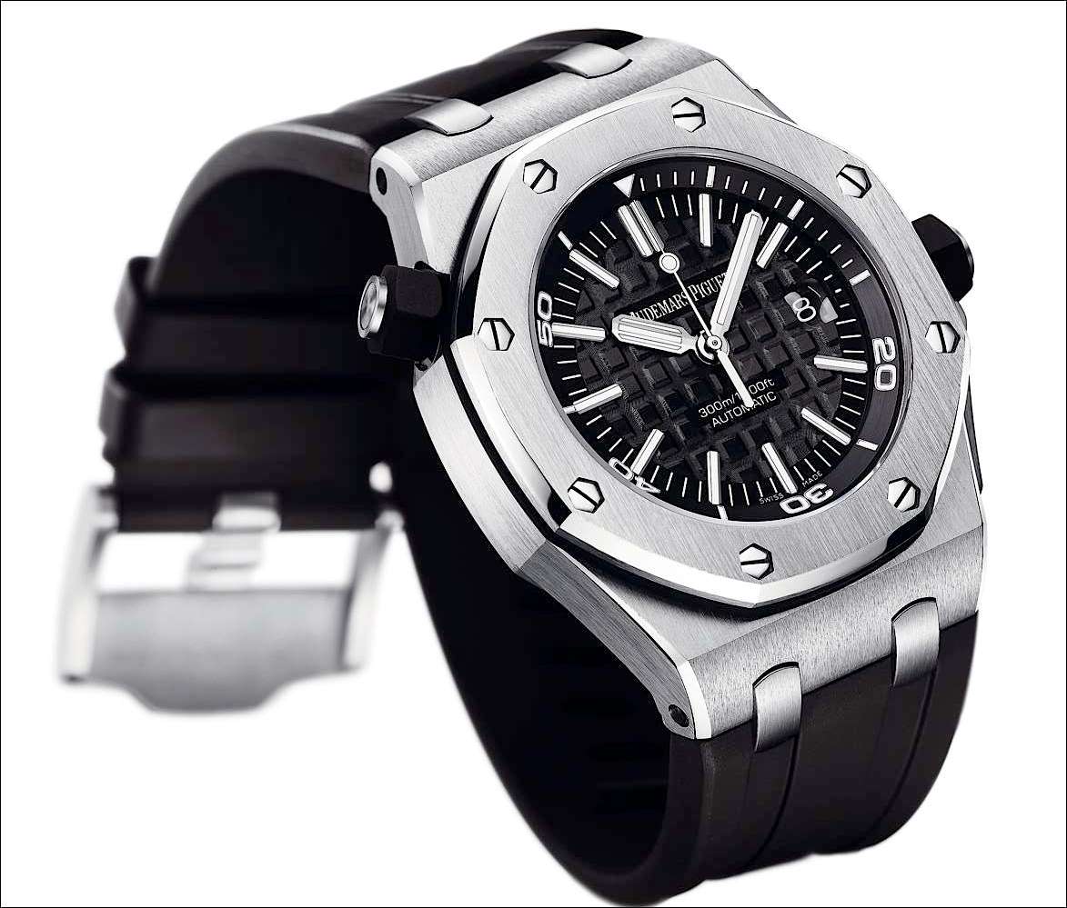 Новая модель Royal Oak Offshore Diver оснащена мануфактурным калибром 3120, с частотой 21600 полуколебаний в час, на 40 камнях, состоящем из 278 деталей, запасом хода 60 часов, функцией "стоп-секунда".