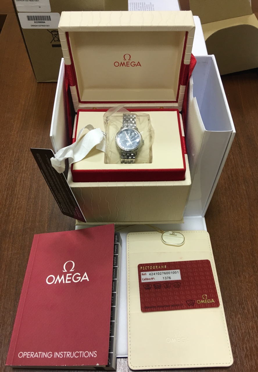 Данная модель имеет черный циферблат с делением на две зоны и римскими цифрами в положениях "3 часа", "6 часов", "9 часов" и "12 часов". Эффектный циферблат защищен устойчивым к царапинам сапфировым стеклом. Корпус диаметром 27,4 мм из нержавеющей стали с браслетом из нержавеющей стали дополнен элегантным безелем. В этой модели используется высокоточный кварцевый механизм OMEGA, калибр 1376.