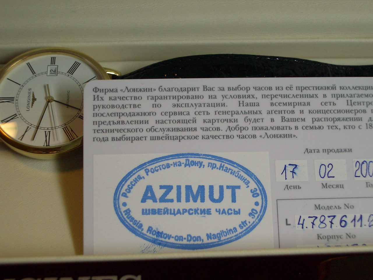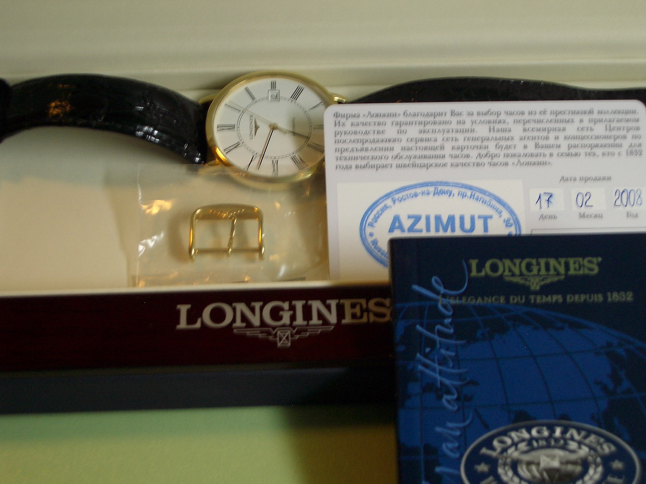 Продаю золотой Longines Presence L4.787.6.11.2, механика с автоподзаводом (ETA 2892-A2) золото 750, диаметр 37 мм носились крайне аккуратно исключительно под костюм.Дополнительно приобреталась застежка "бабочка". Состояние идеальное, точность в пределах 5 минут в месяц. Цена 50 000 рублей готов к встречным предложениям.