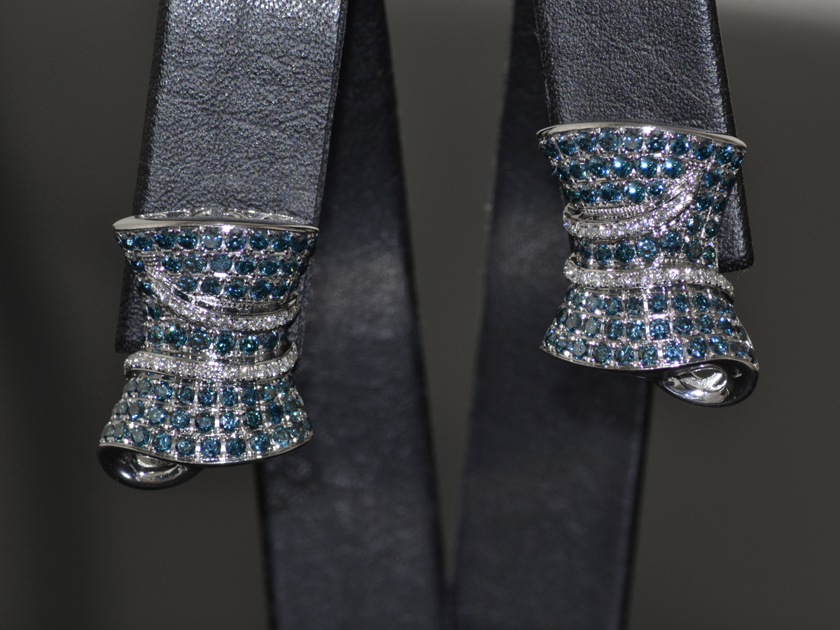 Бесподобный набор кольцо + серьги, белое золото, бриллианты, сапфиры.