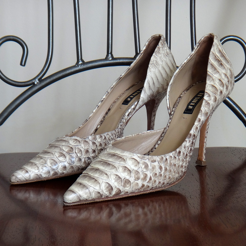 В другом моем объявлении выставлена большая сумка Zagliani из кожи питона, по цвету и фактуре соответствующая этим туфлям. Великолепное сочетание! См. все мои объявления.